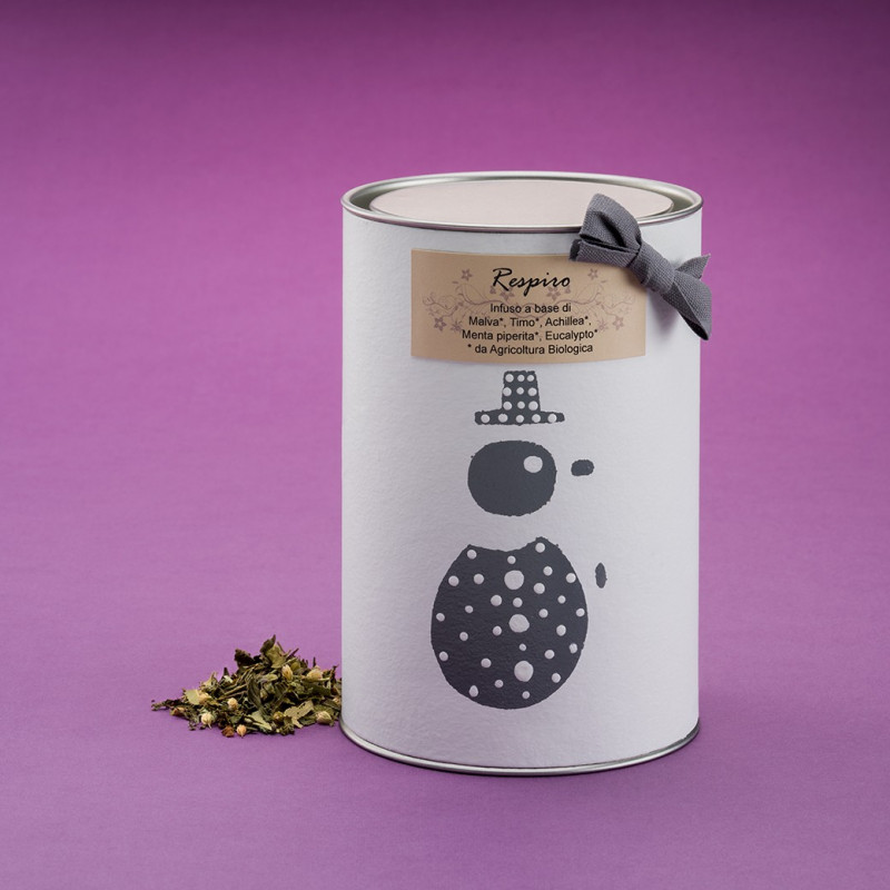 L'infuso balsamico biologico italiano “Respiro” con Malva, Timo, Achillea, Menta ed Eucalipto, con proprietà espettoranti e decongestionanti aiuta a lenire tosse e disturbi respiratori, come allergie e asma.