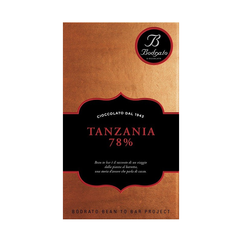 Tavoletta Tanzania fondente 78%. Ottimo cacao Trinitario con note fruttate e piacevole acidità. Prodotto artigianale Italiano. 50gr