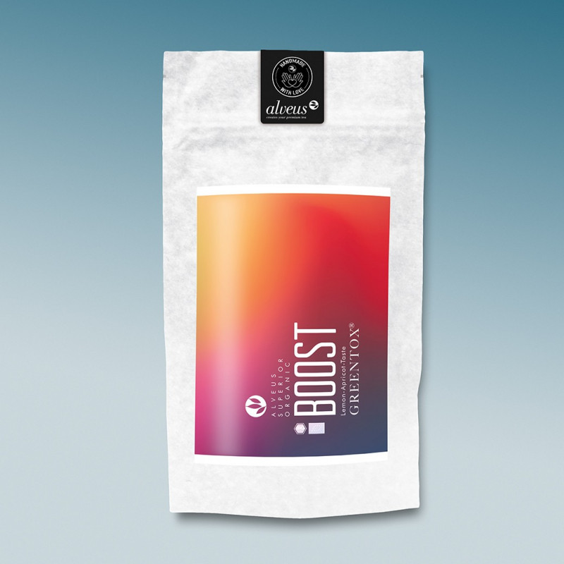 Greentox® Boost è mix bilanciato di matcha, tè verde, guaranà e mate: un compagno ideale per tutti i giorni; grazie alla combinazione perfetta degli aromi di limone e albicocca, diventerà il vostro alleato irrinunciabile. Gusto:limone, albicocca.